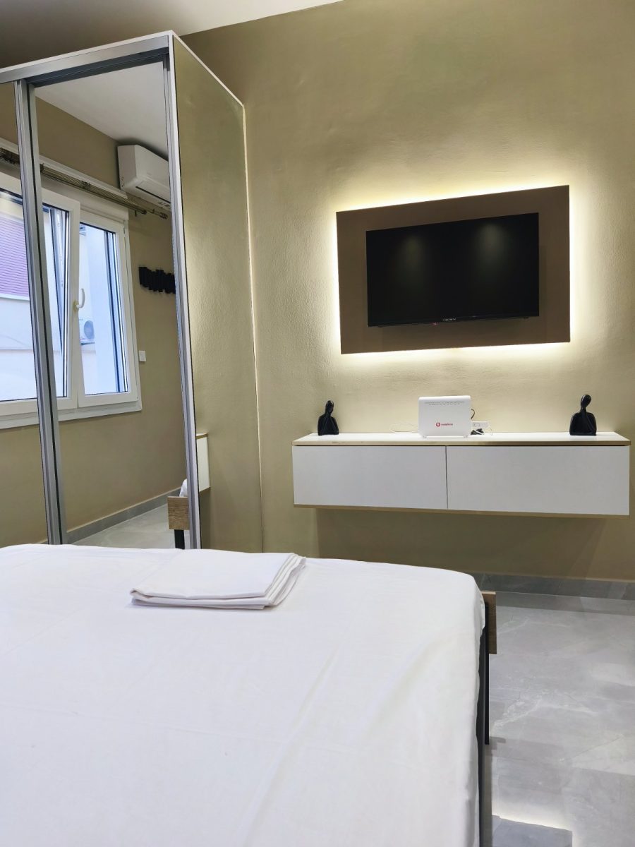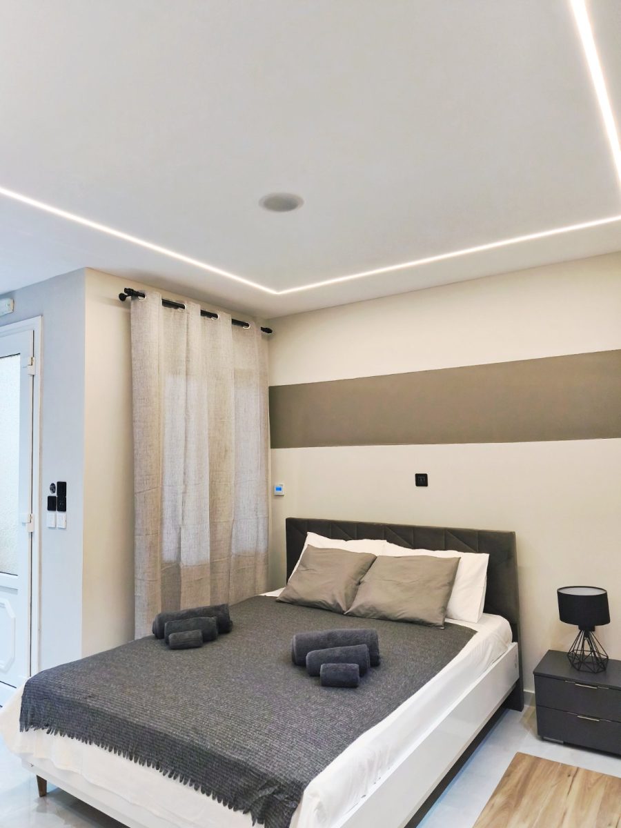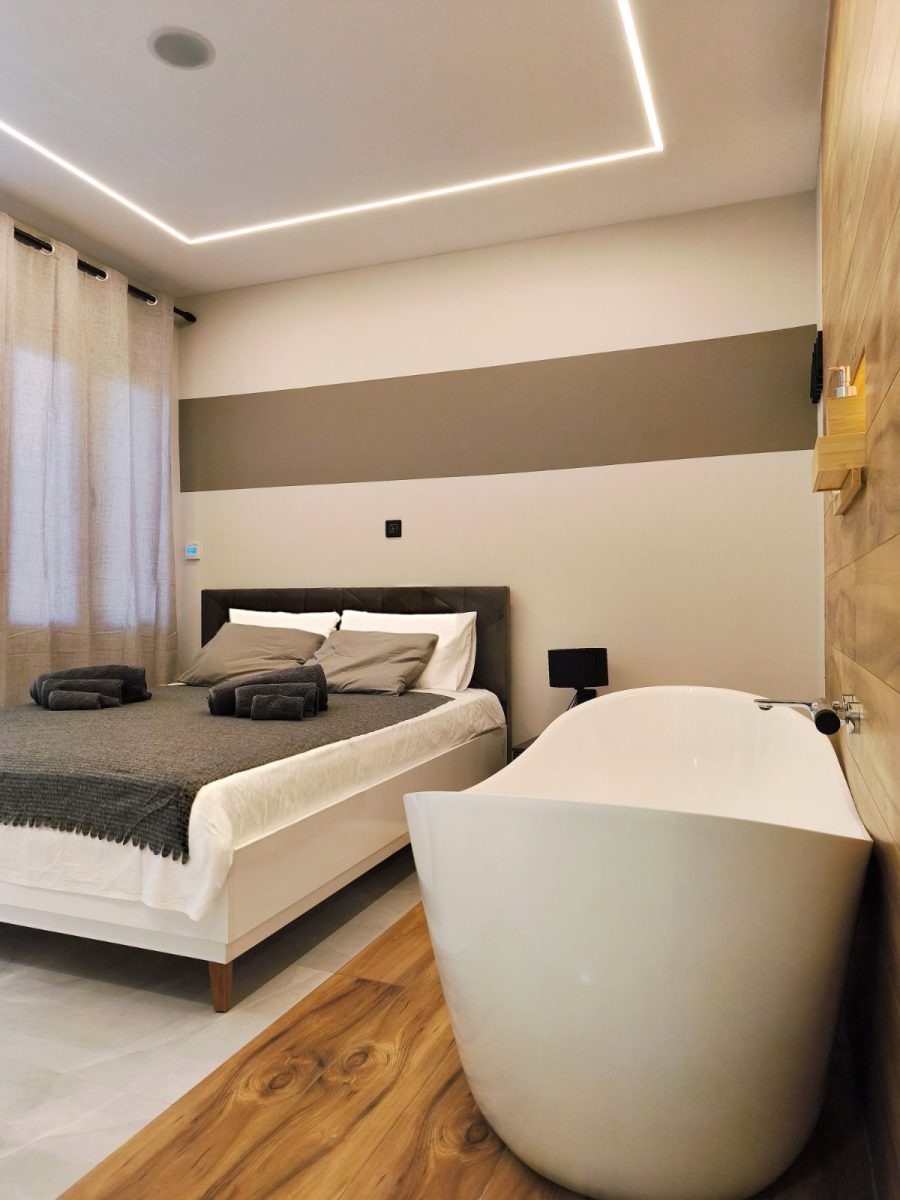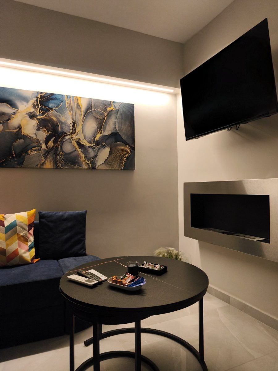 Ο σύγχρονος σχεδιασμός,οι κρυφοί φωτισμοί, τα ποιοτικά υλικά και η προσεγμένη αισθητική συνδυάζονται με την προνομιακή τοποθεσία στο κέντρο της πόλης, πολύ κοντά σε δημόσιο χώρο στάθμευσης, με super market και σημεία ενδιαφέροντος σε απόσταση αναπνοής. Μπορείτε να απολαύσετε το ποτό σας στην μπανιέρα ακούγοντας την αγαπημένη σας μουσική από το δικό σας ηχοσυστημα με τα ηχεία τοποθετημένα στην οροφή του διαμερίσματος. Ιδανικό για ζευγάρια και επισκέπτες που αναζητούν μια ξεχωριστή εμπειρία διαμονής.