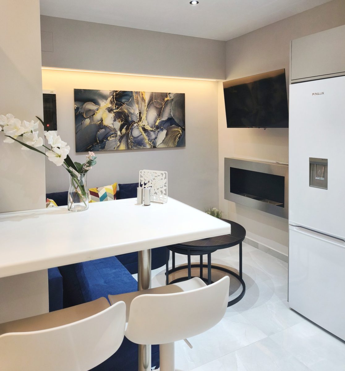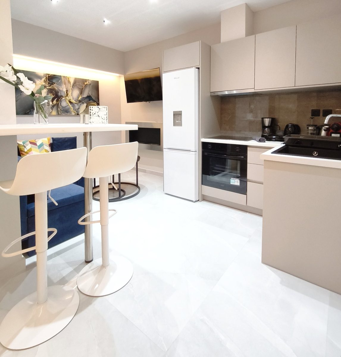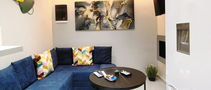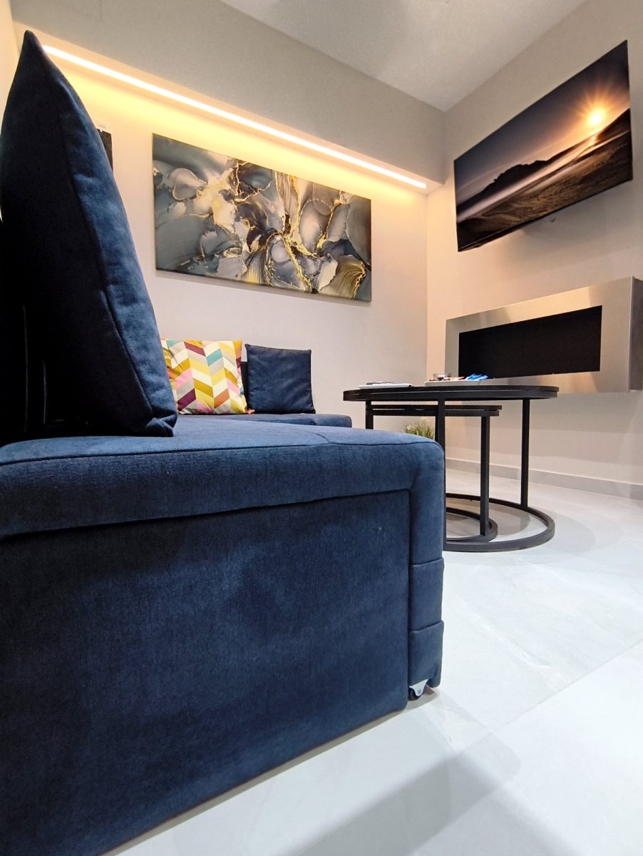Ο σύγχρονος σχεδιασμός,οι κρυφοί φωτισμοί, τα ποιοτικά υλικά και η προσεγμένη αισθητική συνδυάζονται με την προνομιακή τοποθεσία στο κέντρο της πόλης, πολύ κοντά σε δημόσιο χώρο στάθμευσης, με super market και σημεία ενδιαφέροντος σε απόσταση αναπνοής. Μπορείτε να απολαύσετε το ποτό σας στην μπανιέρα ακούγοντας την αγαπημένη σας μουσική από το δικό σας ηχοσυστημα με τα ηχεία τοποθετημένα στην οροφή του διαμερίσματος. Ιδανικό για ζευγάρια και επισκέπτες που αναζητούν μια ξεχωριστή εμπειρία διαμονής.